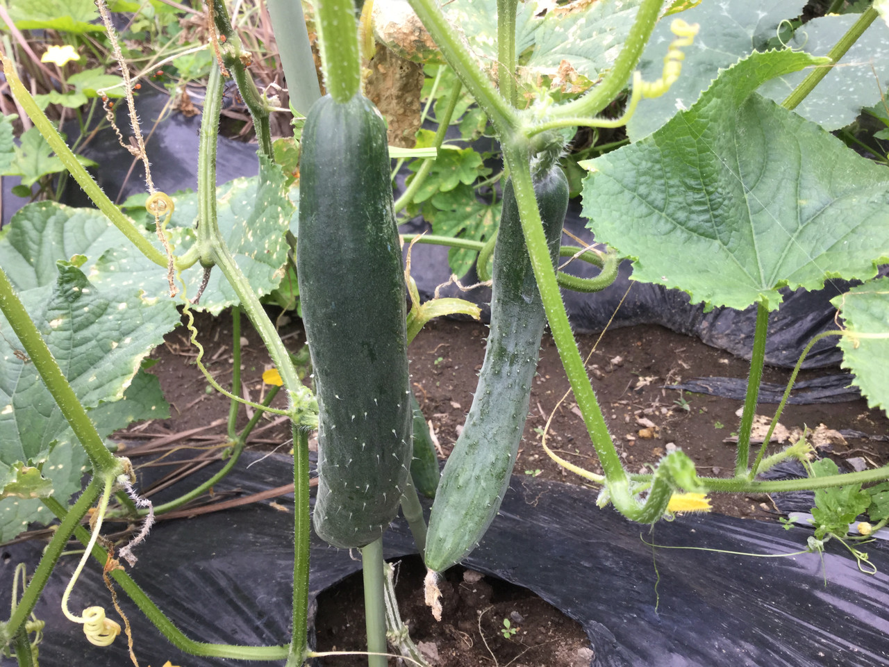 美山の畑では、大きなきゅうりができてます。