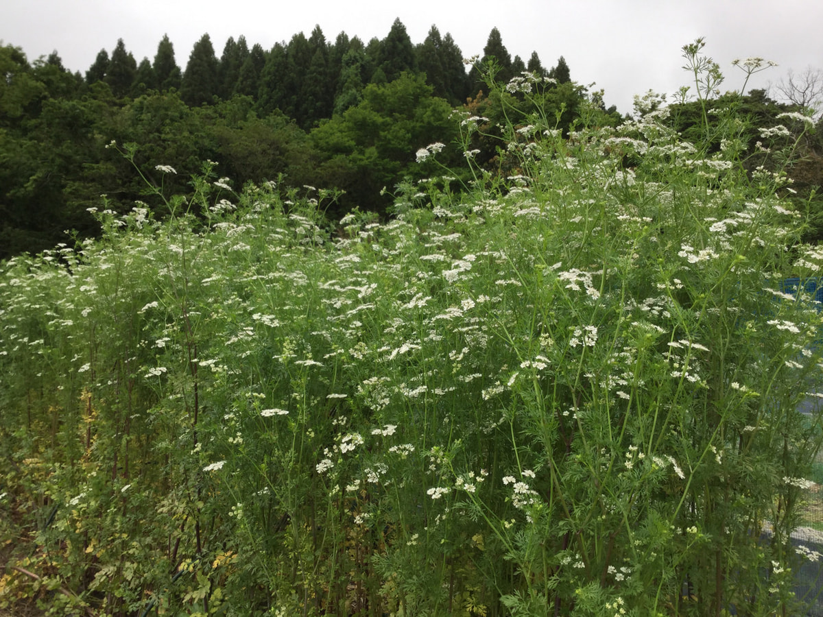 2017年5月 8日 美山の畑はパクチーが大きく成長して、白い花がたくさん咲いています。 昨年11月に植えたパクチーは冬を越して 春の暖かい陽射しを浴びてグングンと成長して 白い小花がたくさん咲いています。 今月は種が出来るので、パクチーの種を収穫予定です。