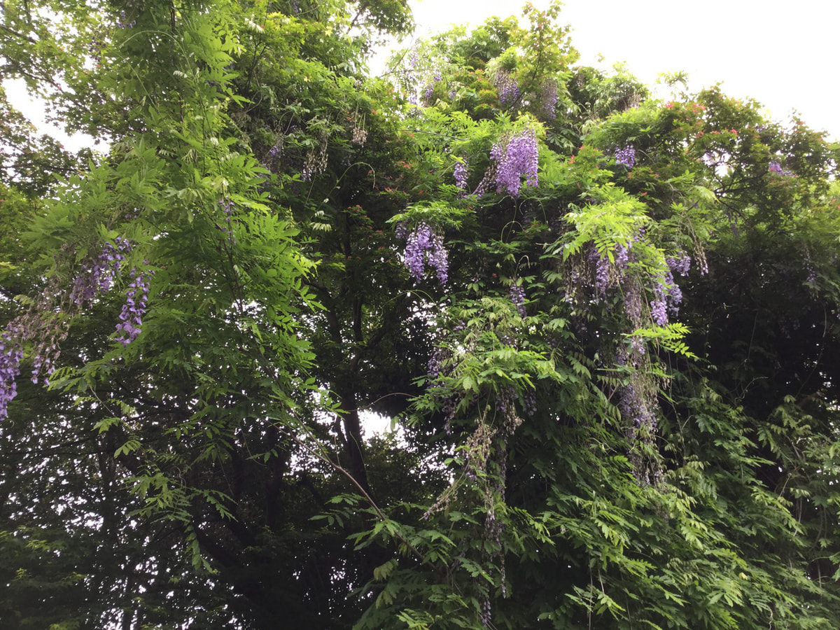 美山の新イタリアンカフェの庭に咲いている藤の花