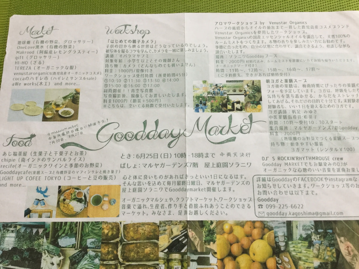 先月に引き続き、今月7月30日(日)10時からマルヤガーデンズ goodday marketに出店します。
